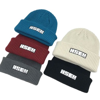 Moda al por mayor nuevo logotipo bordado personalizado Color sólido fibra acrílica cálido gorro de invierno con logotipo personalizado gorro de punto gorros cálidos